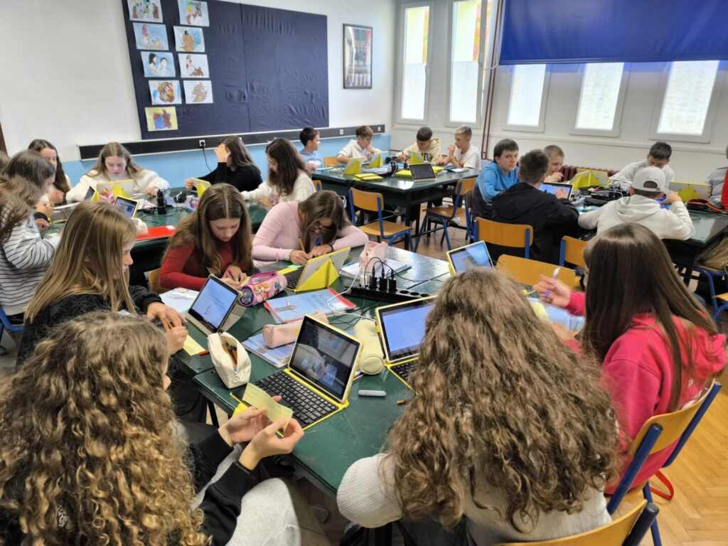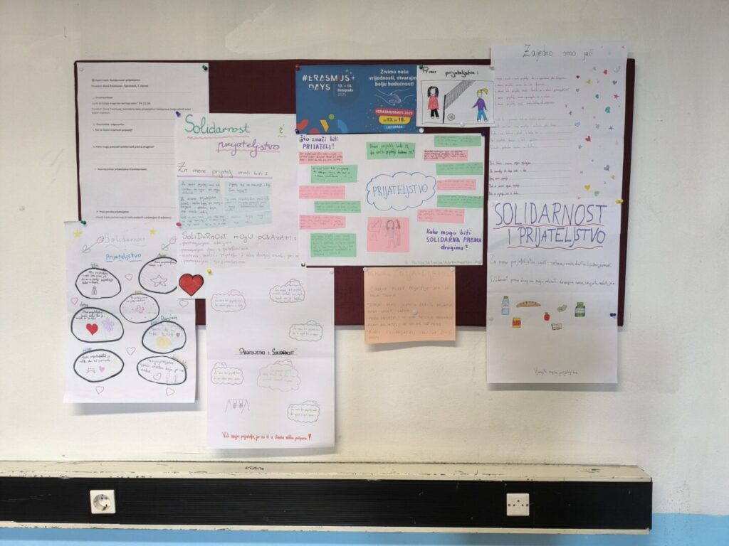 Učiteljica hrvatskoga jezika Lucija Laljak održala je radionicu s učenicima 5. a i 5. b razreda na temu haiku poezije. Učenici su, nadahnuti temom putovanja, stvarali vlastite haiku pjesme kojima su izražavali svoja razmišljanja o otkrivanju svijeta, novim iskustvima i ljepoti različitosti. Učiteljica razredne nastave Iva Rogan povela je učenike 1. a razreda na zanimljivo istraživačko putovanje u Estoniju, zemlju iz koje su stigle gošće u posjet našoj školi. Prvašići su usporedili hrvatsku i estonsku zastavu, izradili svoje male zastavice, a naučili su i kako se na estonskom kaže “Tere tulemast” – što znači “Dobro došli”. U hodniku škole postavili su pano dobrodošlice na hrvatskom i estonskom jeziku. Na satu Informatike učiteljica Mihaela Mihovilić potaknula je učenike da kroz istraživanje i izradu digitalnih plakata upoznaju kulturne običaje Španjolske i Estonije. Učenici su u sklopu Informatičke grupe izrađivali plakate uz pomoć učiteljice te su na kreativan način prikazali bogatstvo i raznolikost europske kulture. Učitelj vjeronauka Danijel Cvetko organizirao je s učenicima 7. razreda radionicu o prijateljstvu, solidarnosti i međusobnoj suradnji. Učenici su kroz razgovor i aktivnosti promišljali o važnosti razumijevanja, pomaganja i zajedništva. Školska pedagoginja Ružica Kotarski održala je radionicu za učenike 7. i 8. razreda zainteresirane za Erasmus razmjenu u Madridu koja će se održati u travnju 2026. godine. Učenici su upoznati s propozicijama natječaja te su imali priliku iznijeti svoja očekivanja i ideje o sudjelovanju u projektu. U radionici je sudjelovalo 35 učenika, a u sklopu Dana Erasmusa 16. 10. održan je i Županijski stručni skup Građanskog odgoja i obrazovanja na kojem su izlaganja održale Ružica Kotarski, pedagoginja savjetnica, te Lucija Laljak, učiteljica mentorica, koje su predstavile tečajeve na kojima su sudjelovale u sklopu projekta „Za inovaciju, inkluziju, inspiraciju“.