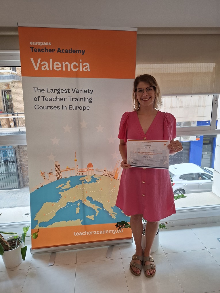 U sklopu Erasmus+ projekta „Za inovaciju, inkluziju i inspiraciju”, koji promiče suvremene pristupe poučavanju te potiče razmjenu iskustava među europskim učiteljima, učiteljica hrvatskog jezika Lucija Laljak sudjelovala je od 18. do 23. kolovoza 2025. na tečaju „PBL: Make Students’ Learning Real and Effective!” održanom u Valenciji u Španjolskoj.