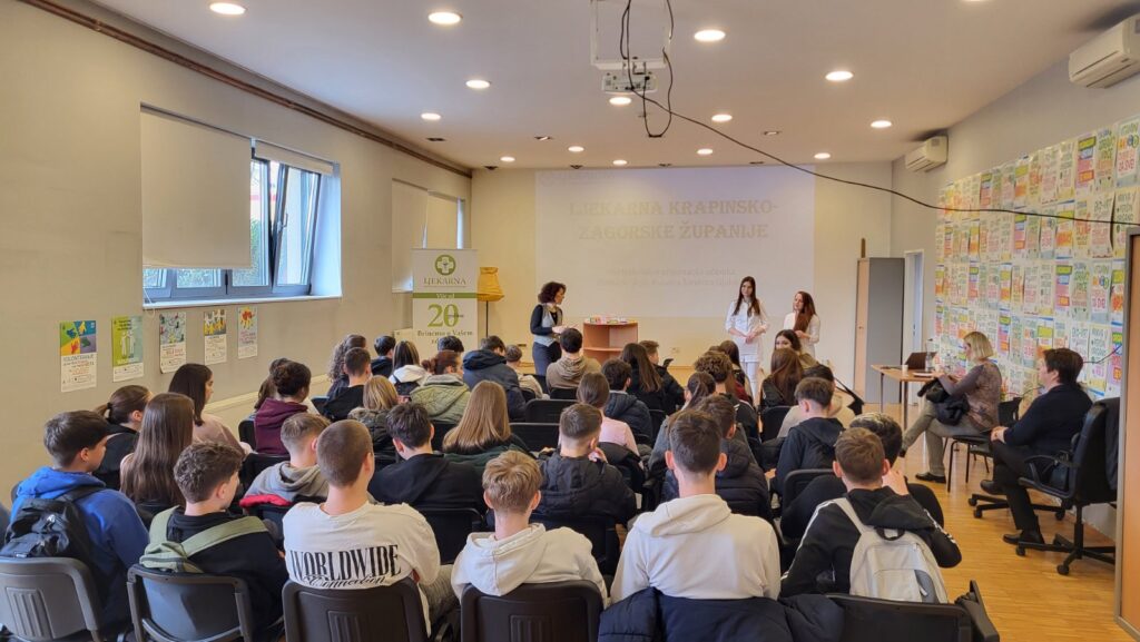 19. veljače 2026. u Zelenoj dvorani u Zaboku održano je edukativno i vrlo zanimljivo predavanje za učenike osmih razreda u organizaciji učiteljice Ružice Cigule i ravnateljice Ljekrane Krapinsko – zagorske županije gđe. Anamarije Salopek. Predavanje se sastojalo od tri dijela. Prvi dio bio je o povijesti ljekarništva u Zagorju od prve ljekarne u Krapini u vlasništvu oca Ljudevita Gaja, ljekarne u Pregradi „K Angelu čuvaru“ do prvog pionira proizvodnje lijekova u Hrvatskoj (Donja Stubica) Eugena Viktora Fellera. Feller je poznat po proizvodnji čudotvornog eliksira Elsa Fluid, koji se prodavao diljem svijeta od New Yorka do Kine početkom 20. stoljeća. Gđa. A. Salopek također je na zanimljiv način upoznala učenike što znači biti farmaceut, koliko je taj posao dinamičan i važan kad pacijenti i korisnici dobivaju informacije koje im se mogu pružiti u ljekarni umjesto u ambulanti. Drugi dio predavanja nastavila je gđa. Lucija Smrkulj. Kroz prezentaciju i kviz znanja s učenicima je ponovila reproduktivni ciklus kod žena i mogućnosti zaštite kod mladih koji još nisu spremni osnovati obitelj. U kvizu se istaknuo učenik Teo Premrl čime je osvojio poklon paket vrijednih proizvoda. U zadnjem dijelu predavanja gđa. Valentina Pakračić-Jambrek posvetila je par riječi o tome što i kako se pripremiti za buduće zanimanje farmaceuta. Učenici su bili vrlo zadovoljni i puni dojmova, a za kraj svaki učenik je na poklon dobio vrećicu s raznim proizvodima ljekarne. Razrednice i učenici osmih razreda zahvaljuju gđi. A. Salopek na iskazanom trudu i organizaciji; bilo je vrlo zanimljivo i edukativno i nadamo se nastavku suradnje novom generacijom osmaša.