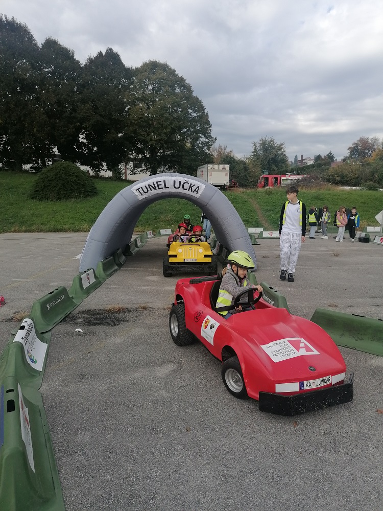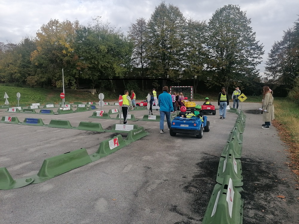 Nakon odslušanog teorijskog dijela gdje su učenici kroz interaktivno predavanje učila o sigurnom ponašanju u cestovnom prometu, uslijedio je još zanimljiviji praktični dio programa gdje u mini-električnim automobilima uče o sigurnosti u prometu.