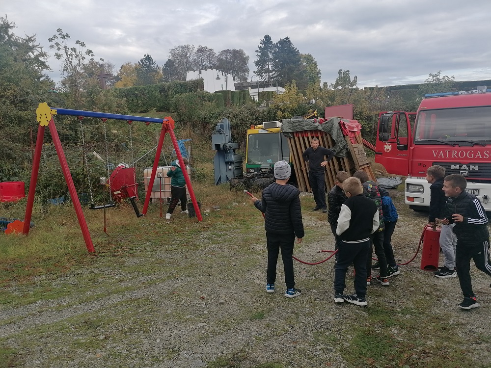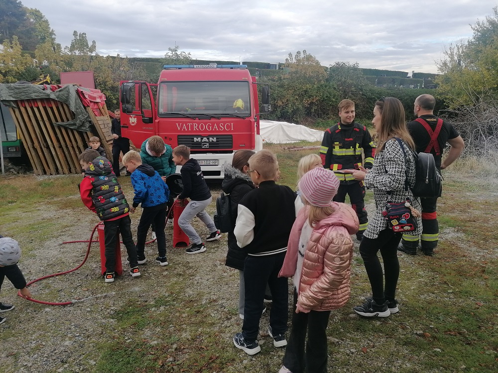 Učenici su se imali priliku upoznati s policijskim vozilom i zanimanjem policajca te uz primjerenu pokaznu vatrogasnu vježbu sa poslovima koje obavljaju vatrogasci. Zahvaljujemo se na zanimljivoj prezentaciji i uspješnoj organizaciji radionice!