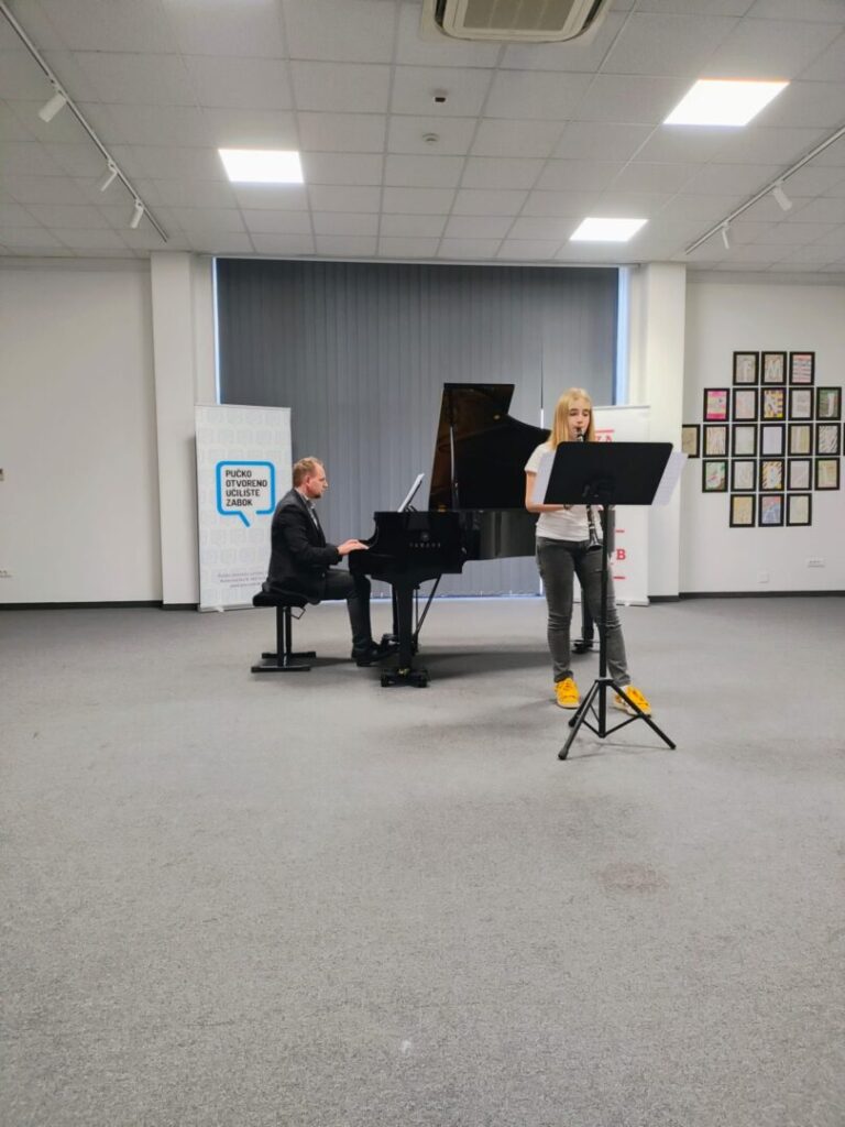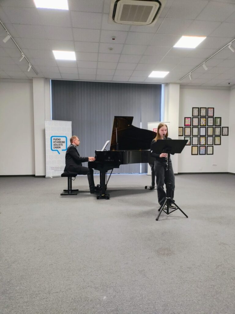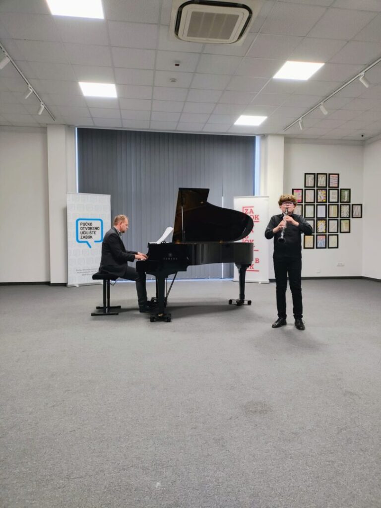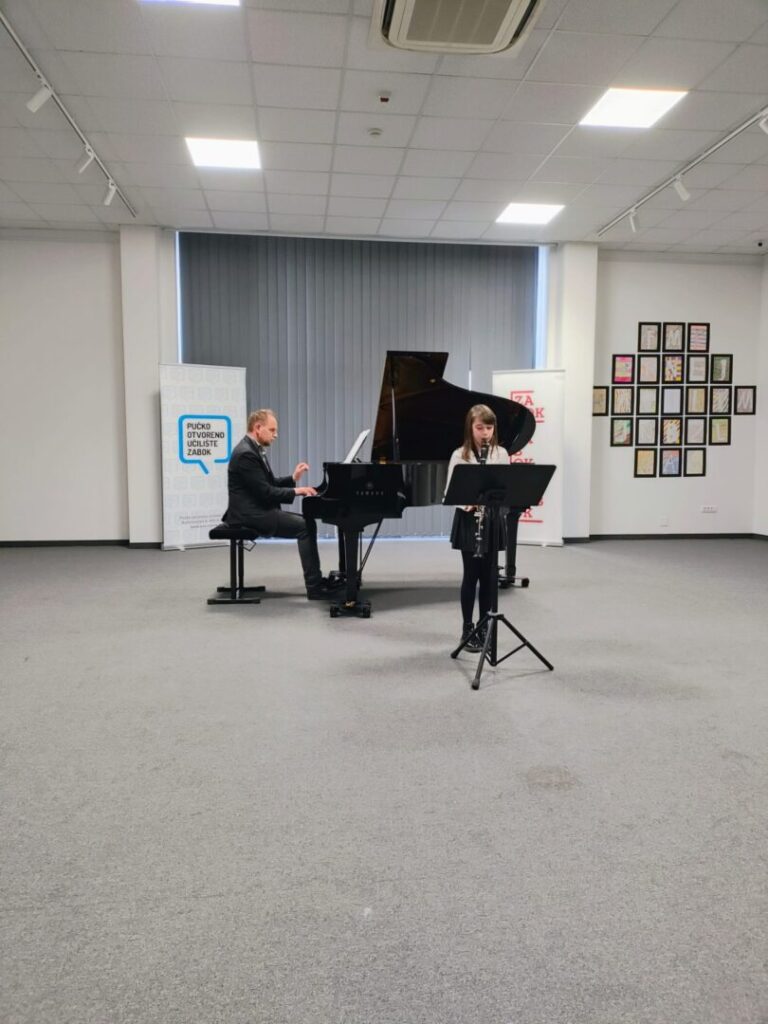 Koncert natjecatelja naše OGŠ pri OŠ Ksavera Šandora Gjalskog u Gradskoj galeriji Zabok u ponedjeljak 13. 4. 2026. godine realiziran je izvrsno što potvrđuje ohrabrujući pljesak publike. Nastupali su učenici naše Osnovne glazbene škole: Jan Košćak, Marta Cvrtila, Gabriela Štefanić, Lea Đurkan i Iskra Tuđa. Pokazali su spretnost u izvođenju glazbenih djela klasičnog repertoara za klarinet i klavir. Taj nastup im je ujedno i priprema za nadolazeća natjecanja u Hrvatskoj i Sloveniji. Želimo im puno uspjeha i marljivost u vježbanju, a također hvala i roditeljima, učiteljima Martini Deščak, Mihovilu Dorotiću i Ivanu Škreblinu, voditelju, ravnatelju, voditelju galerije te svima koji podupiru rad OGŠ-e u Zaboku.