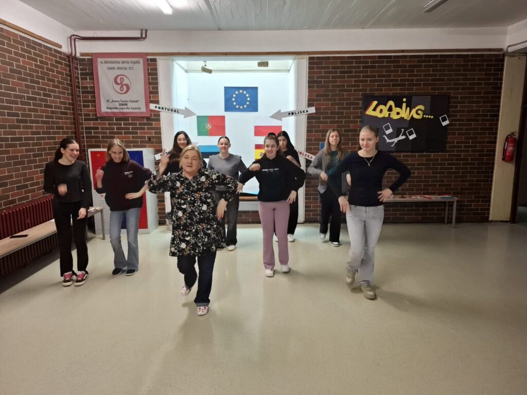 Pripremile su koreografiju zagorskih folklornih plesova iz projekta „Cunge, cunge, cungeraj“. Koreografija se sastojala od plesova: Pod mostec, Judin polka, Repa i Oberštajer. Obzirom na obveze učenica i pedagoginje koja je pripremala koreografiju, nije ih bilo lako okupiti. Nekoliko puta se probalo, te je nastala mala koreografija koju će učenice s veseljem predstaviti. Prije toga učenice su pripremile izložbu na ulazu škole o državama s kojima naša škola sudjeluje u okviru projekta. Dobra priprava je pola obavljenog posla!