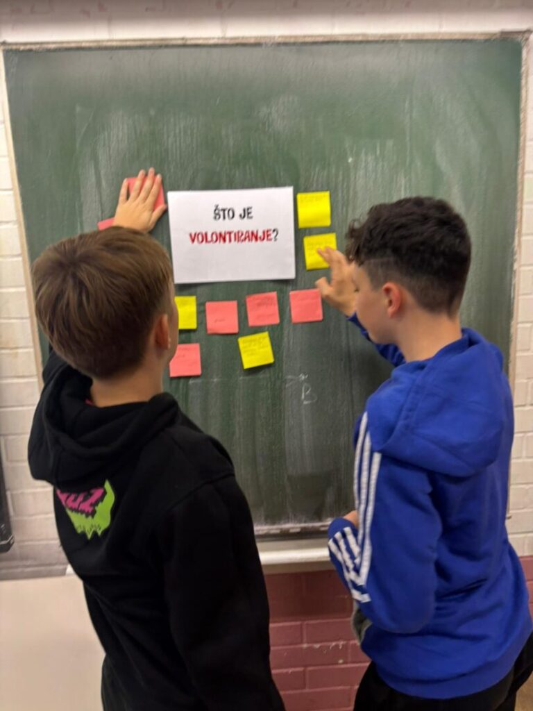Učenici 6. d odjela su prošli tjedan sudjelovali u kreiranju volonterskog programa za odgojno-obrazovne ustanove u okviru kojeg su učenici, školski volonteri aktivno promišljali o volonterskim aktivnostima koje žele provesti u školi i zajednici. Tako su učenici, njihova razrednica Lorena Martinić i pedagoginja Ružica Kotarski osmislili kako urediti i oplemeniti unutarnji i vanjski prostor naše Škole. Radionice iz područja Odgoja za volontiranje je vodila Ivana Radanović iz MU Zagor. Osim toga, u navedenom programu učenici će obilježiti Međunarodni dan volontera kroz online prikaz fotografija lokalnih volonterskih aktivnosti s područja Krapinsko-zagorske županije u 2025. godini te sudjelovati u manifestaciji „Hrvatska volontira u 2026.“