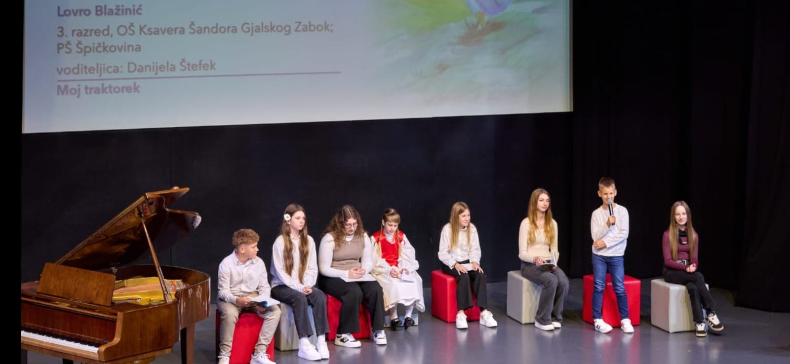U subotu, 25. listopada 2025. godine održana je Smotra dječjeg kajkavskog stvaralaštva “Dragutin Domjanić” u Svetom Ivanu Zelini. Na Smotri je sudjelovao Lovro Blažinić, učenik 4. š razreda naše škole, pod vodstvom učiteljice Danijele Štefek, sa svojom pjesmom Moj traktorek. Na natječaj ovogodišnje 45. Smotre prijavilo se ukupno 74 škola. Svojim radovima sudjelovao je 301 mladi autor/ autorica vođenih uz pomoć 110 voditeljica i voditelja. Ukupno je prijavljeno 339 novih kajkavskih pjesama od kojih je stručni ocjenjivački sud odabrao 109 pjesama koje su objavljene u zbirci pjesama „Poletela bum z vetrom”, među kojima se našla i Lovrina pjesma. Od 109 pjesama iz zbirke stručni sud odabrao je 32 pjesme koje su ušle u ovogodišnji program Smotre, za javno izvođenje na svečanosti Smotre u dvorani Kraluš POU Sveti Ivan Zelina među kojima je također jedna od izabranih bila Lovrina pjesma.