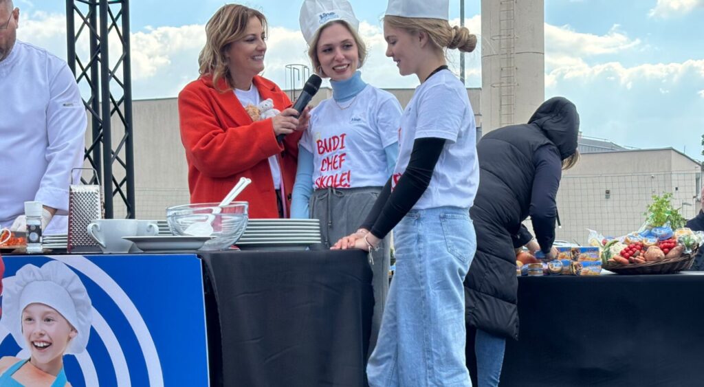 Tena je zajedno sa svojom razrednicom kuhala na pozornici gdje su pokazale svoje kulinarsko znanje, spretnost i timski duh. U pratnji su bili i njezini kolege iz razreda – sedam učenika koji su bodrili Tenu i pružili joj glasnu i srčanu podršku tijekom cijelog natjecanja.