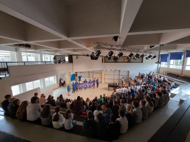 U ponedjeljak 6. listopada naša škola bila je domaćin Utrke mira, najveće štafetne utrke na svijetu, kojom se promiče međunarodno prijateljstvo i razumijevanje. Utrku mira utemeljio je Sri Chinmoy 1987. godine, a u Hrvatskoj se održava od 1989. godine. Međunarodni tim trkača iz Mađarske, Srbije, Engleske, Ukrajine, Češke, Novog Zelanda i Hrvatske dočekao je 3. a razred s učiteljicom Snježanom Turk te su zajedno noseći upaljenu baklju trčali prema školi. Ondje su ih dočekali učenici 3. i 4. razreda te područnih škola, učitelji, gradonačelnica Valentina Đurek i ravnatelj Tomislav Polanović koji se obratio prisutnima. Kroz interaktivno predavanje učenici su saznali brojne zanimljivosti o Utrci mira, a posebno su se oduševili kada je baklja mira išla od učenika do učenika.
