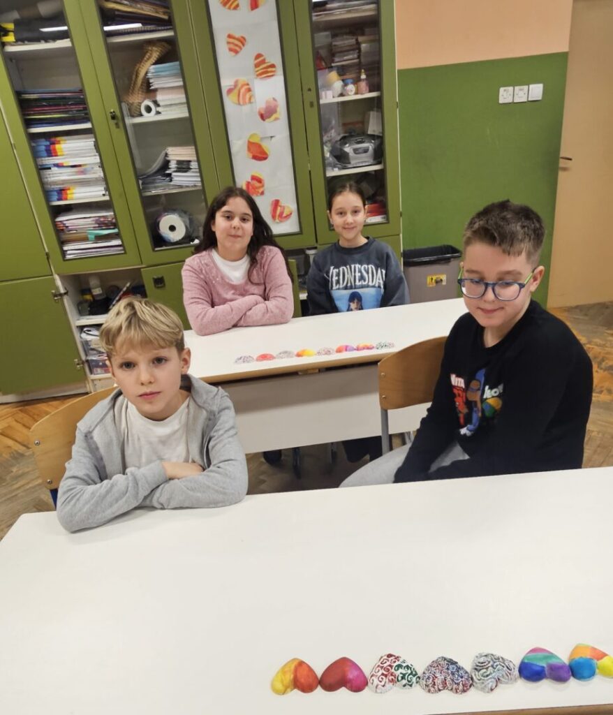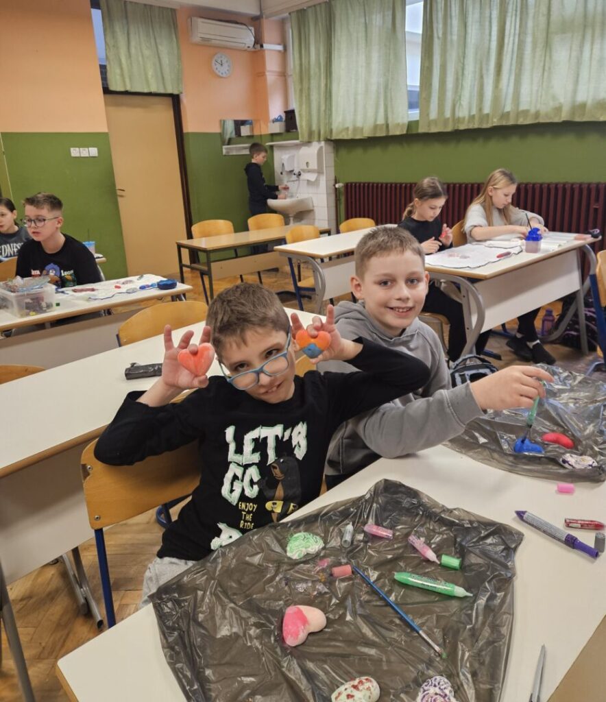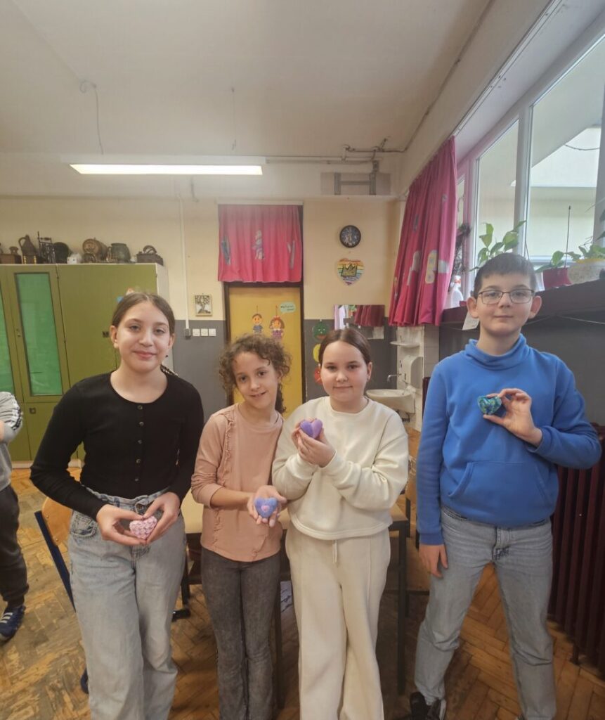 Uz blagdan Valentinova i Svjetski dan braka učenici četvrtog razreda i članice Biblijske grupe sa svojom vjeroučiteljicom Ksenijom Miškulin izradili su i ukrasili magnetiće od gipsa u obliku srca. Uz adventske vjenčiće ovo je drugi projekt u sklopu cjelogodišnjeg školskog projekta „Caritas – djelotvorna ljubav“.