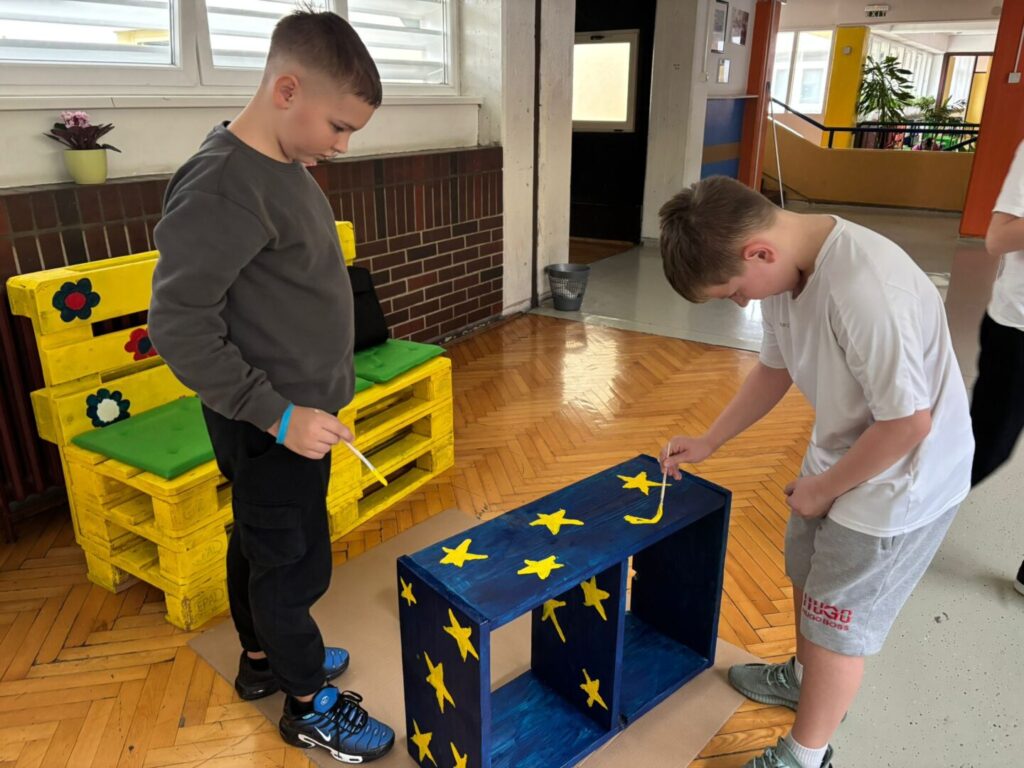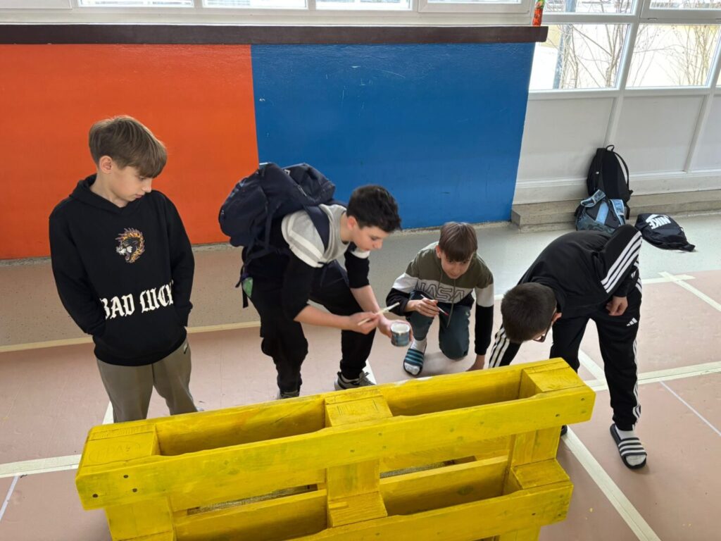 Nakon što su dopremljene u Školu, učenici su ih s razrednicom i roditeljima prebojali te ukrasili. Tako su ne samo oni, već i drugi učenici škole dobili zanimljiv i poticajan prostor za druženje za vrijeme odmora i učenje u školi.