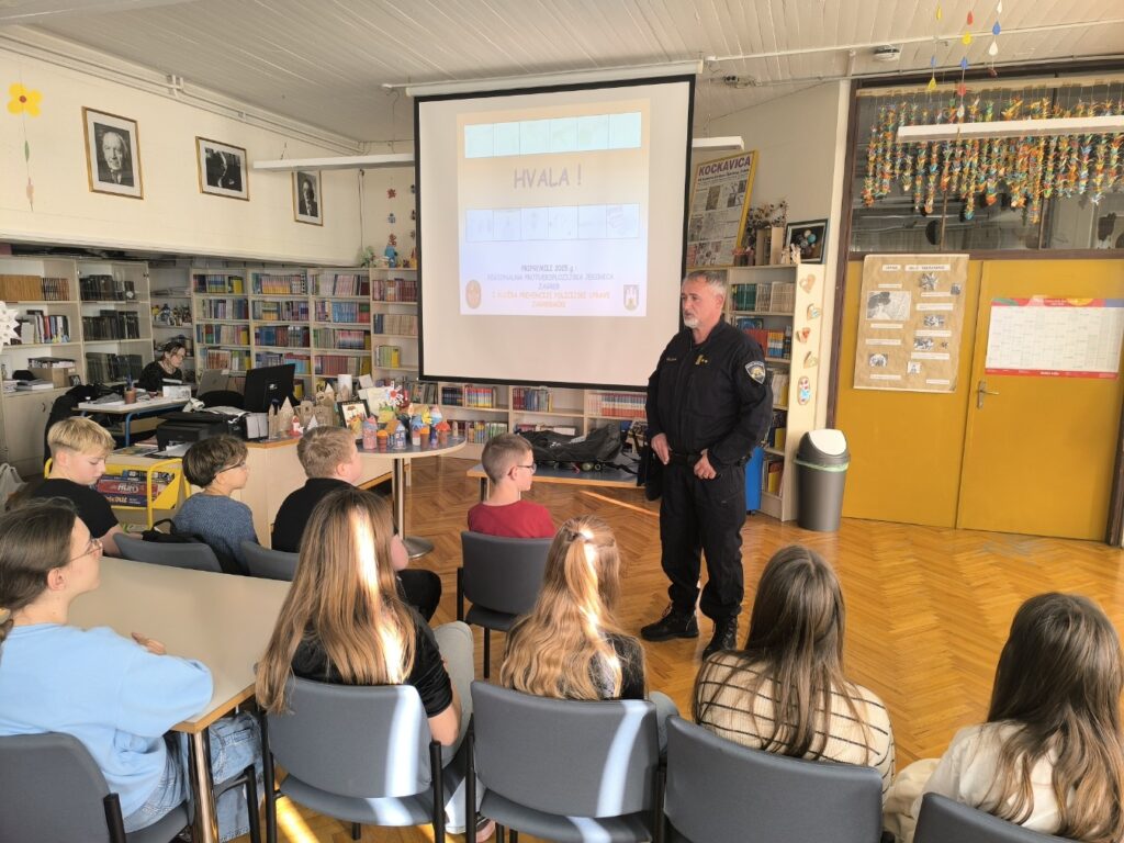 U četvrtak 11. prosinca 2025. za učenike petih razreda održano je edukativno predavanje o opasnostima nepravilne i neodgovorne uporabe pirotehničkih sredstava. Predavanje je održao Željko Hlupić iz Regionalne protueksplozijske jedinice Zagreb, a iz PU Krapinsko-zagorske pridružili su mu se Željko Lež i Darko Rožić.
