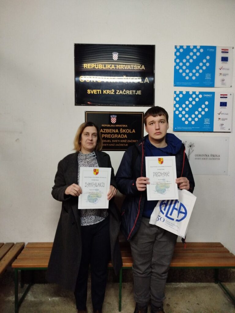 Patrik Brezak osvojio je 1. mjesto, Ella Starman 3. mjesto, a Teo Premrl 2. mjesto. Nakon rješavanja zadataka, učenici su imali priliku upoznati vršnjake iz drugih škola županije s kojima dijele iste interese.